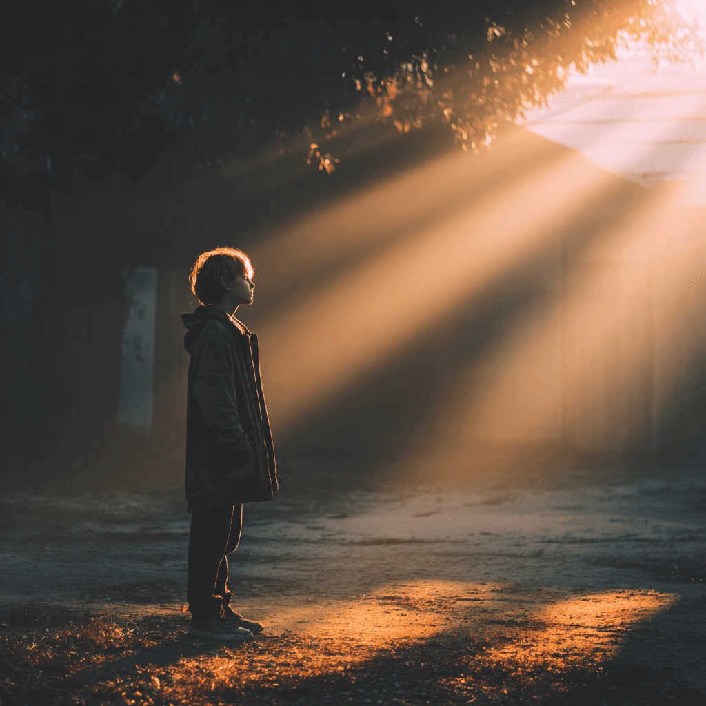 Through the language of light and distortion, childhood surfaces as fragmented recollection — tender, unreliable, and incomplete.