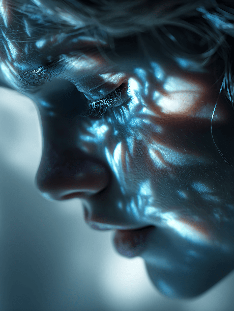 Light as a memory that refuses to disappear, even when the world collapses around it. These portraits emerge from darkness the way a soul rises after being abandoned in childhood, carrying fractures that never fully mend. The figures are not whole, nor do they try to be. They hover in a quiet in-between space, suspended between longing and withdrawal, revelation and concealment. Every face is a palimpsest: behind each visible layer, another remains, faint but indelible, like the shape of a touch that never came back.