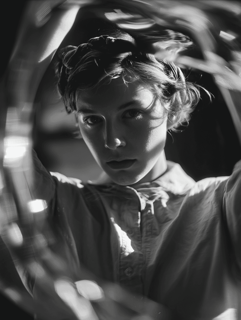 Influenced by chiaroscuro and the emotional weight of silence. Shaped by the fragmented rhythm of an abandoned childhood, and the haunting stillness of an adulthood suddenly standing alone with two small lives to hold. The visual language draws from jazz improvisation, unstable, searching, never resolving, and from the soft fractures of memory that surface when light brushes against absence.